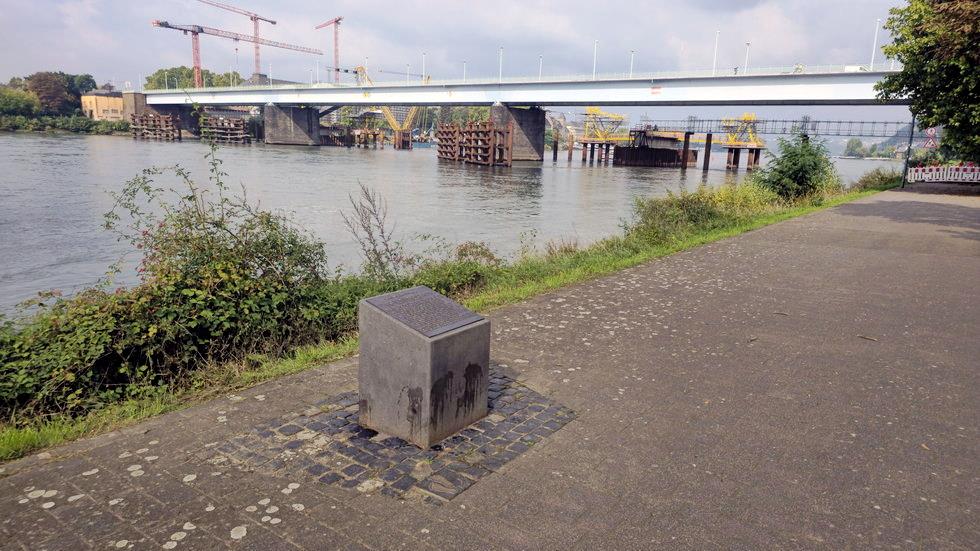 Am 7. März 1945 wurde die Brücke von den sich zurückziehenden Einheiten der Wehrmacht gesprengt. Man begann bereits 1946 mit dem Bau einer Behelfsbrücke, 1950 erfolgte die Zustimmung für den Bau einer Stahlbalkenbrücke mit vier Fahrspuren. Für die neue Brücke wurde auch die Bundesstrasse auf der rechten Rheinseite neu geführt, wovon die nachfolgenden Fotos aus dem Privatbesitz von Hans Rech zeugen.