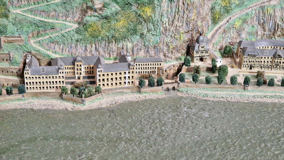 Ein fünf Meter langes Modell der Schiffsbrücke sowie ein Modell der fliegenden Brücke sind im Rhein-Museum Koblenz zu sehen.