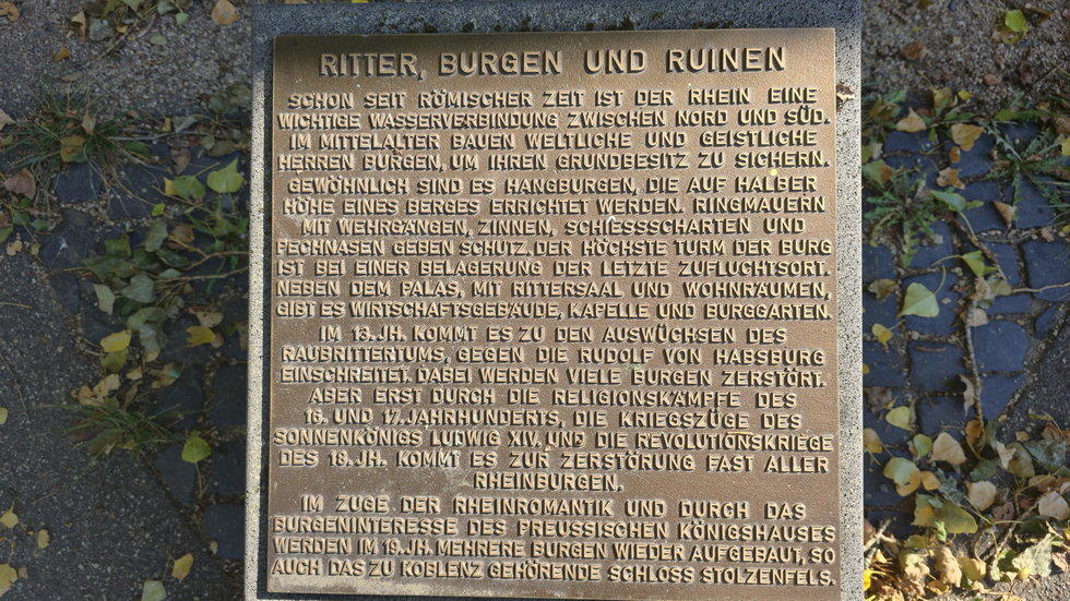 Im Zuge der Rheinromantik und durch das Burgeninteresse des preußischen Königshauses werden im 19. Jh. mehrere Burgen wieder aufgebaut, so auch das zu Koblenz gehörende Schloss Stolzenfels.