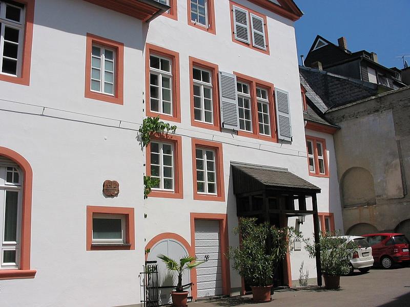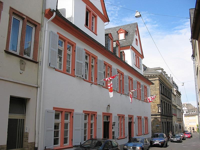 Die Vorderfront des 1711 errichteten Gebäudes, die weitgehend original erhalten ist, gilt als Beispiel für das Können der Ehrenbreitsteiner Kunsthandwerker.